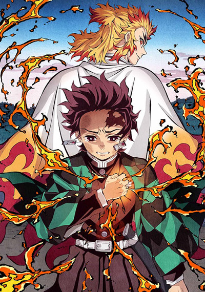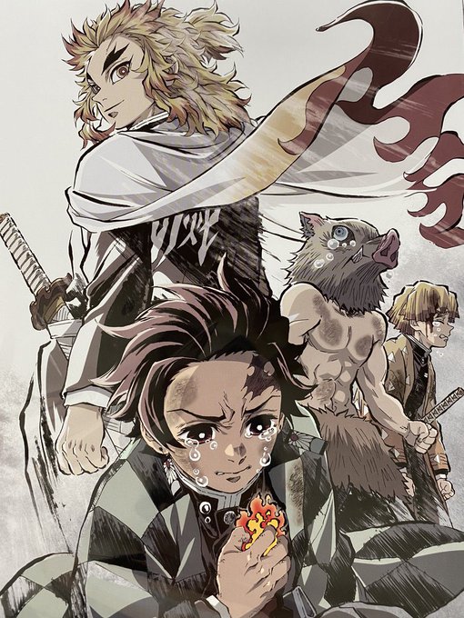 4枚だとイラストが見にくかった。 構図がよく似てる来場特典と無限列車編の2巻。 https://t.co/jY3ZfaMOPG