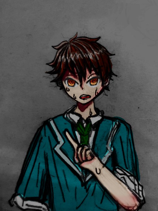 これは息抜きにダンロンっぽく描いた奏汰くんと千秋の落書き (色塗りだけデジタル)