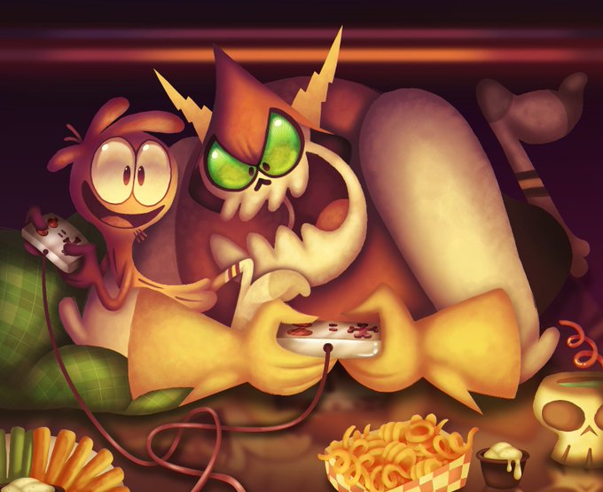 Haven't digitally painted in a while so here's Wander and Hater having a sleepover!