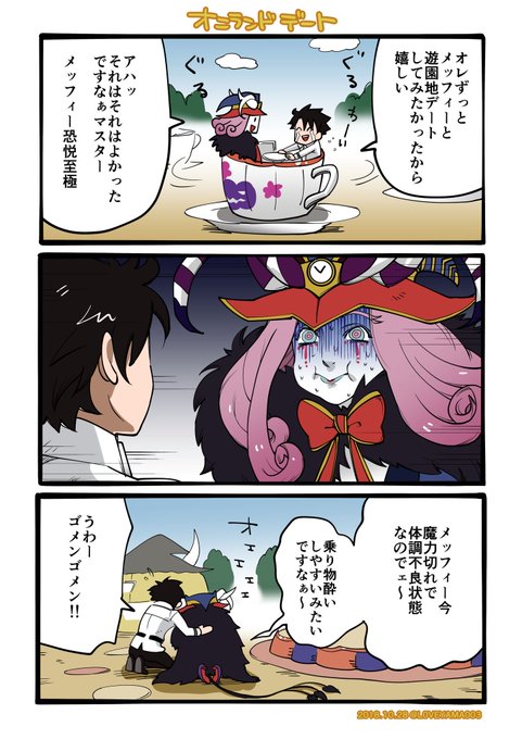 オニランドデートしているぐだ男君とメッフィーを描きました。 (ぐだ♂メフィ)