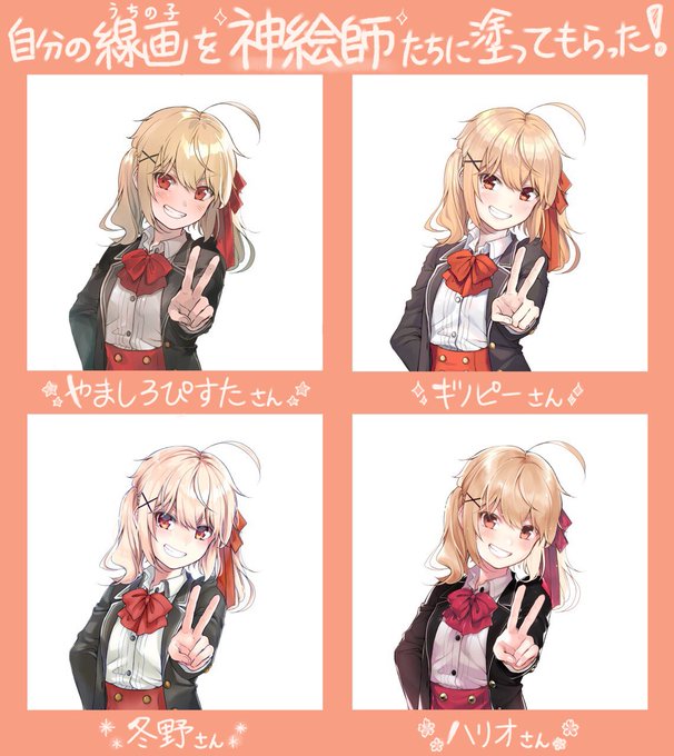神絵師の方々との線画交換大会に参加させていただきました~~!!本当に楽しい企画でした🙏✨ 2枚目は自分で塗ったもの。 ちなみにうちの子鈴音(りんね)ちゃんです。🍎🍏