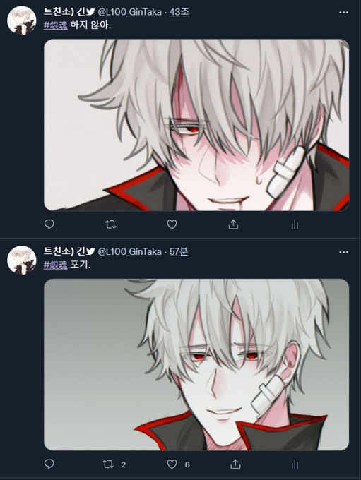 #은혼_트친소 #긴타카_트친소 #귀병대_트친소 뻘소리 하는 계정이지만 이런 나라도 트친소를 열면 사람들이 와줄까 어쩌구. 긴타카 상대좌우고정 중심으로 히지미츠 오키카구 반마타 즈라이쿠 사카무츠 등등 (+히지왼 고정) 귀병대 좋아합니다. 마음 맞는 사람 유멘팔로 찾아가요