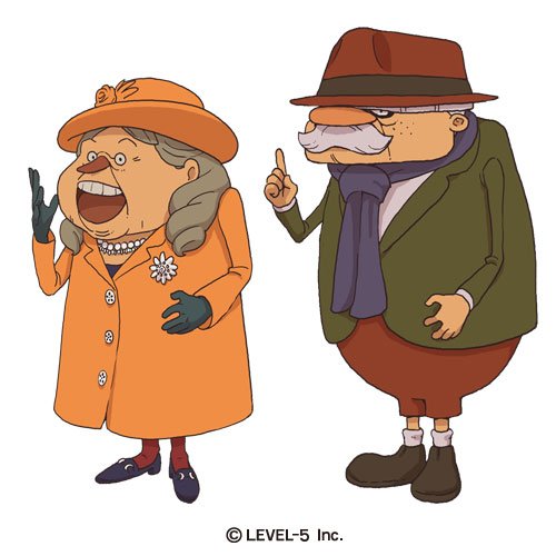 【キャラクター紹介:見覚えのあるキャラクター】レイトンファンなら思わずにやりとしてしまうであろう、二人のキャラクターを紹介!この二人が誰なのかはゲームをプレイして確かめよう♪ #レイトン