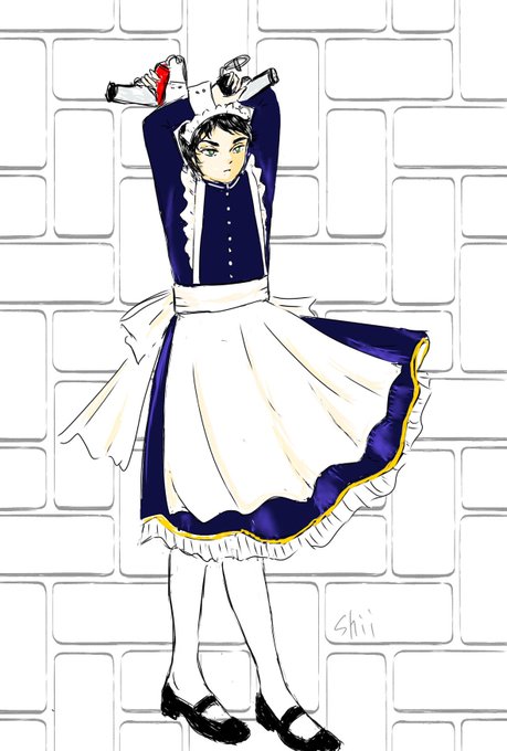 メイドの日〜❤️ 一応ブラッ◯ラグー◯の闘うメイドさんコスの葦君です😅銃を格好良く描けなかったので代わりにドライヤーを持たせてみました💦