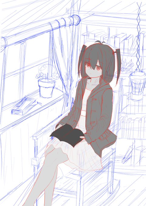 一次創作のラフ。制作時間は32時間くらい。