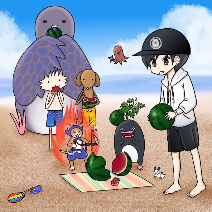 パラシュートウミウシさんの大冒険。今日はファミリーのスイカ割りにこっそり参加いたしました。 #うみうし #ひとり旅