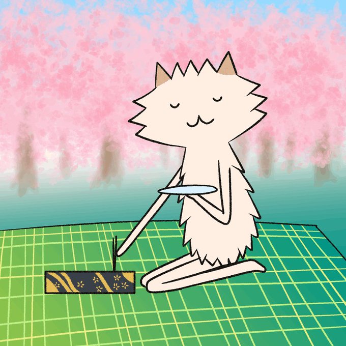 リクエスト返信です🐕 「パワースポットになったねこ忍者さん」を描きました! いい感じの枝を手に入れて神様ごっこです🐈手を合わせて「イクトゥスイクトゥス」と唱えると魚運アップのご利益があるそうです。