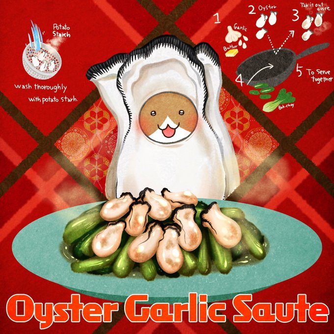 牡蠣の妖精(ねこ忍者)も心踊るオイスターソテーの出来上がり🥬