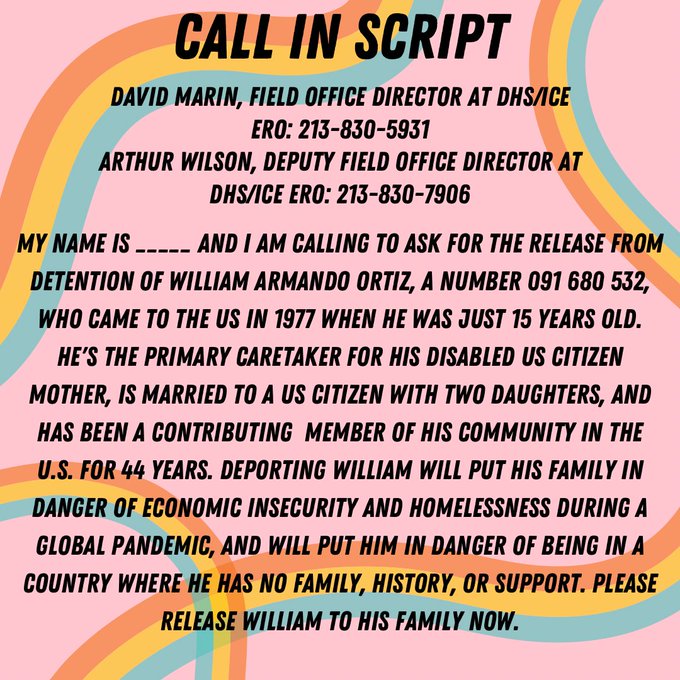William Ortiz was detained by ICE on friday Jan 8th in front of his house in Silver Lake. He is now at a detention center and at risk of deportation any day. Sign our petition and call ICE to demand they #FreeWilliam now.