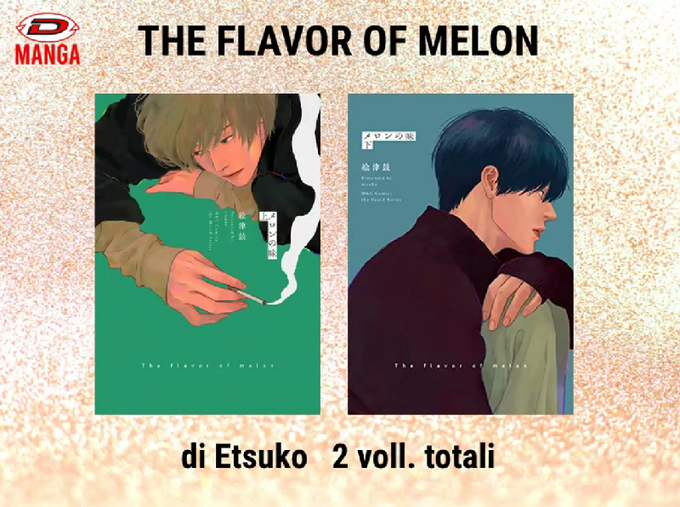 A editora Dynit anunciou "The Flaver of Melon" (Melon no Aji), BL de Etsuko (@etsuko_mimi3). A obra é completa em 2 volumes e foi lançada no Japão no ano passado.