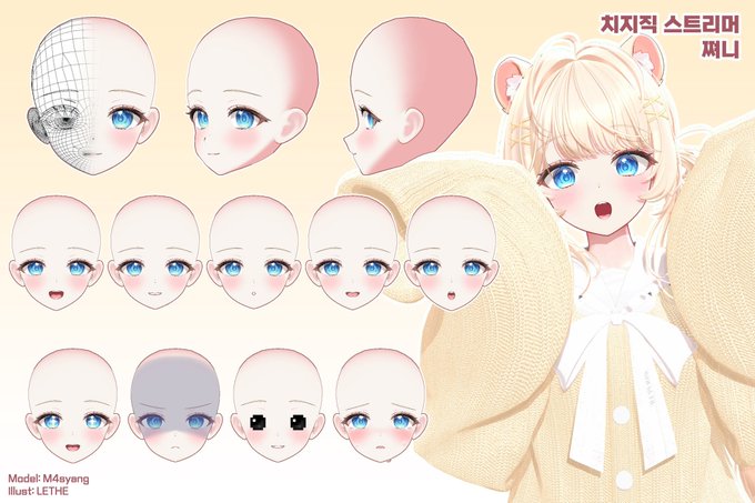 쪄니님(@jjyxxny)의 오리지널 헤드 원화를 작업했습니다💫 모델 3D작업과 이미지 출처는 마샹님(@M4syang_3D_)입니다. 맡겨주셔서 감사합니다! ✨ 쪄니님 방송국 » https://t.co/vFnvcKEf3a