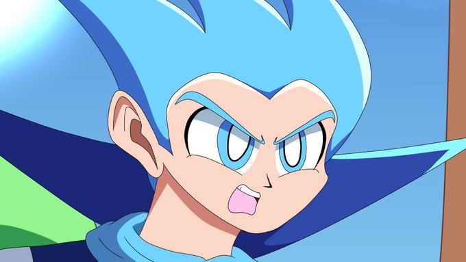 @shareocs His hair and eyes weren’t always blue, they were turned blue permanently when he was on a field trip to a lab and drank some chemicals the scientists were working on as a kid