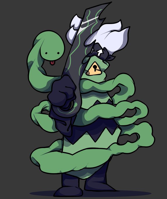 @LummiMoon Her name is Ningyooi/Nini (name pending). She's able to use orange will o wisp-like fire and white water to heal or hurt others. She acts like a mother for Yellow and Pink, cooking for them and teaching them on how to use their barely controllable powers.