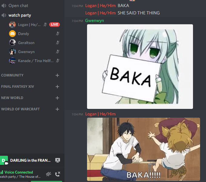 We've just started our watch party in Discord and we're watching Darling in the Franxx.