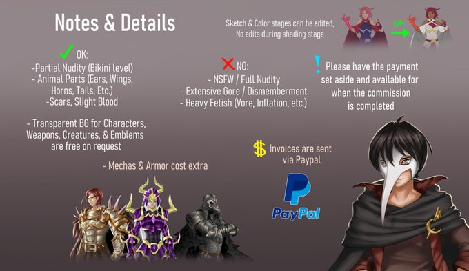 We're back! As per usual, There'll be 5 slots open at a time. Check my twitter description to see how many are currently available.