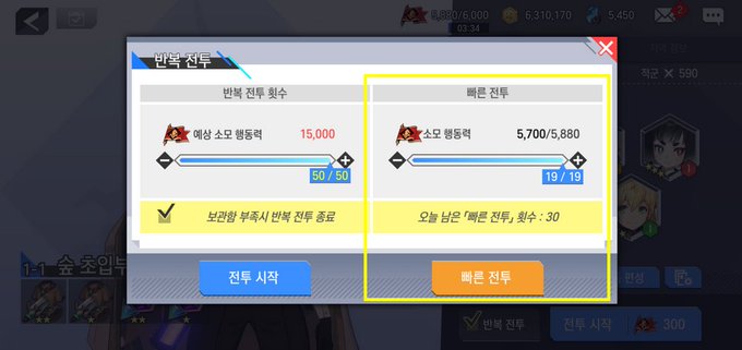 ▶ 전투 즉시 완료?! 빠른 전투 기능 활성화! (매일 최대 30회)