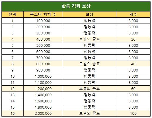 [ 합동 격퇴 보상 ] & [ 특별 상점 리스트 ]