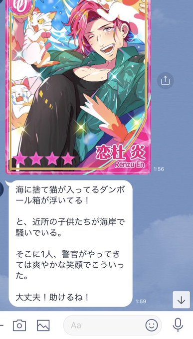 みてーーー💥💥💥みてみて、こん氏が#炎チャンこと恋杜炎くん描いて下さいました…。どんな塗りがいい?って聞かれたので「SSRみたいな塗りがいいですぅ😭」って無茶言ったら枠までつけてくれた…死ストーリーつき…課金する…
