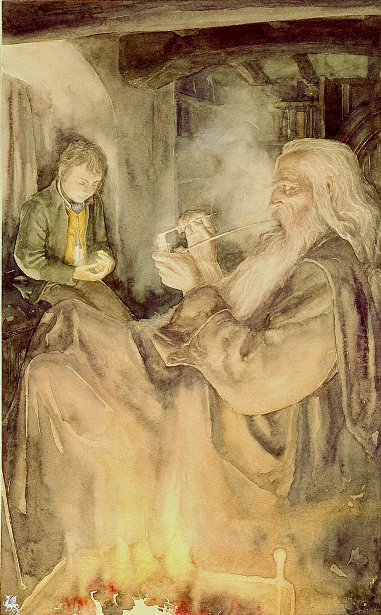 ‘He [Gandalf] was smoking in silence, for Frodo was sitting still, deep in thought. Even in the light of morning he felt the dark shadow of the tidings that #Gandalf had brought.’