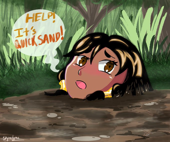 @raymond2k3 OC's Lina stuck in quicksand. She's quite stuck! #quicksand #quicksandfetish