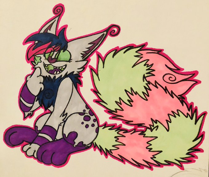 An old character I slapped some new colors on ! This is Jaiger, he used to be natural colored but I have no desire for natural color ocs fgfnjhfghjbh