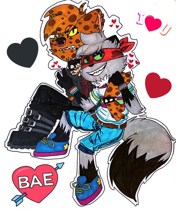 I gotta catch up on uploading twaditional art!! My half of an art trade with @G0theon!!!! Puppy and kitty in love :-3!!