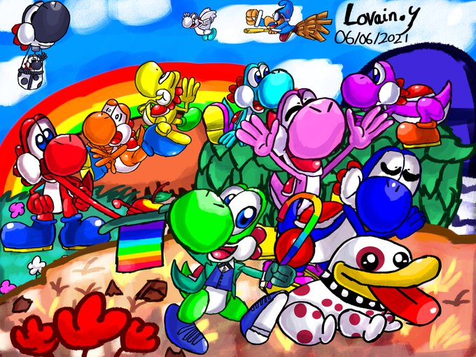 I want to wish everyone #HappyPrideMonth2021 featuring a #fanart of #Yoshi from #SuperMarioBros to pay respect to #Nintendo