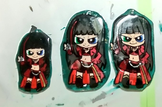 ゆい様プラ板(age of villains ver.)なんとかできた。まだまだ改善点があるけどとりあえず完成でいいや。 レジンを塗っても固めてる時に縮んでしまうのなんとかならんかな…?