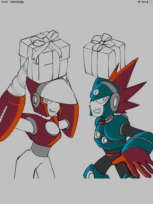 さっきのクリスマスのやつ、壊の黄色い部分と発破くんのグレーの部分(ヘッドホンみたくなってるところとか)のベースの色は同じなんですけど光?ハイライト?の色の違いで違う色に見えるの面白楽しいです