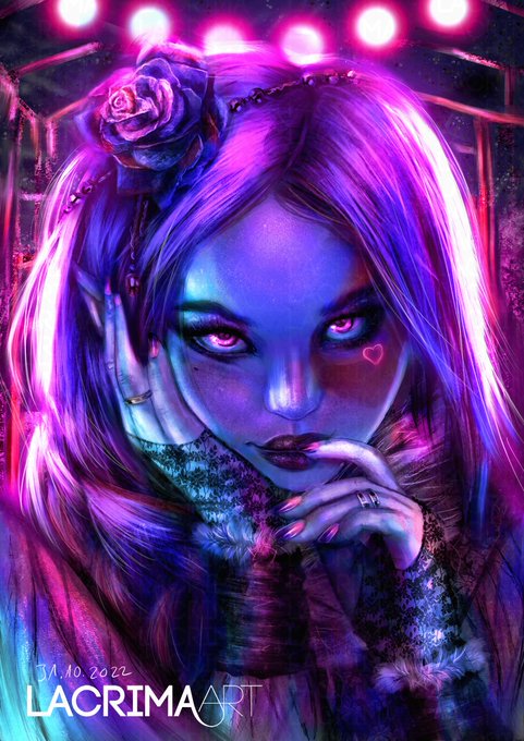 @waschbaerella Hi, I´m Lacrima. I draw a lot of fantasy and cyberpunk art. My passion are original characters, especially badass women. 🥰