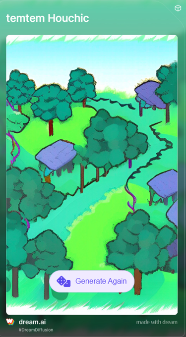 https://t.co/PxWj3UccwKのAIでキーワード"temtem"で生成。不思議生物っぽいものがいたりフィールドの画像っぽいのが出来たりしていて、もしかして wombo君はtemtemを覚えた…?
