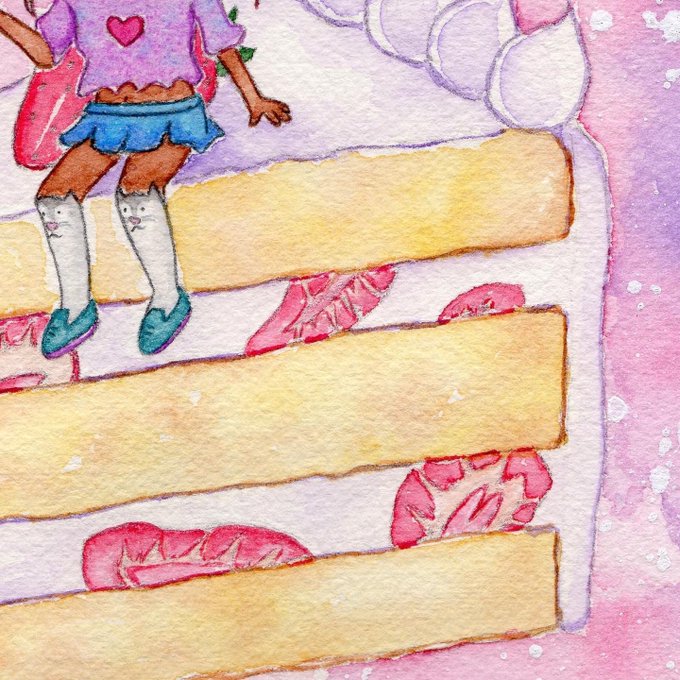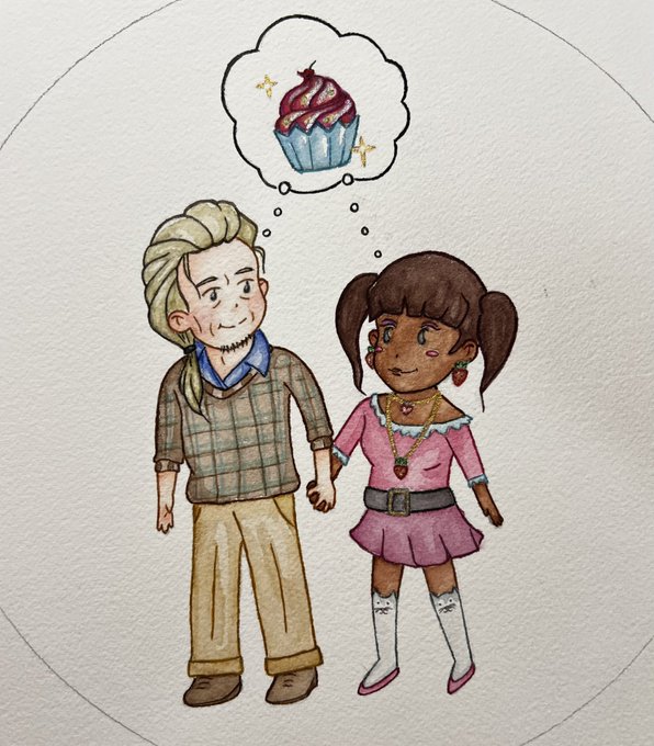 The babes are done! More Tanya & Roger chibis to look at while you eat your cake in space with your BFF. 💜💛 "Cosmic Cake" ~watercolor & acrylic ink on 8.5" circle cold press #originalcharacter #watercolor