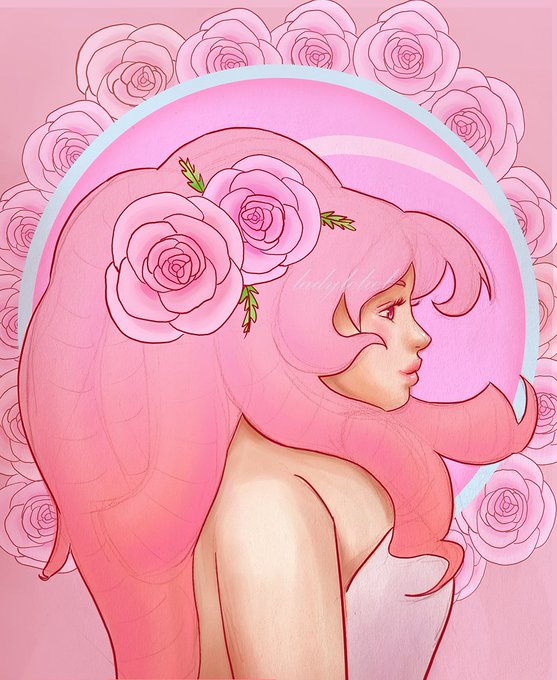 Rose Quartz from #StevenUniverse #illustration . Doing the outlines was super easy this time because her hair is just clumps!! 👍