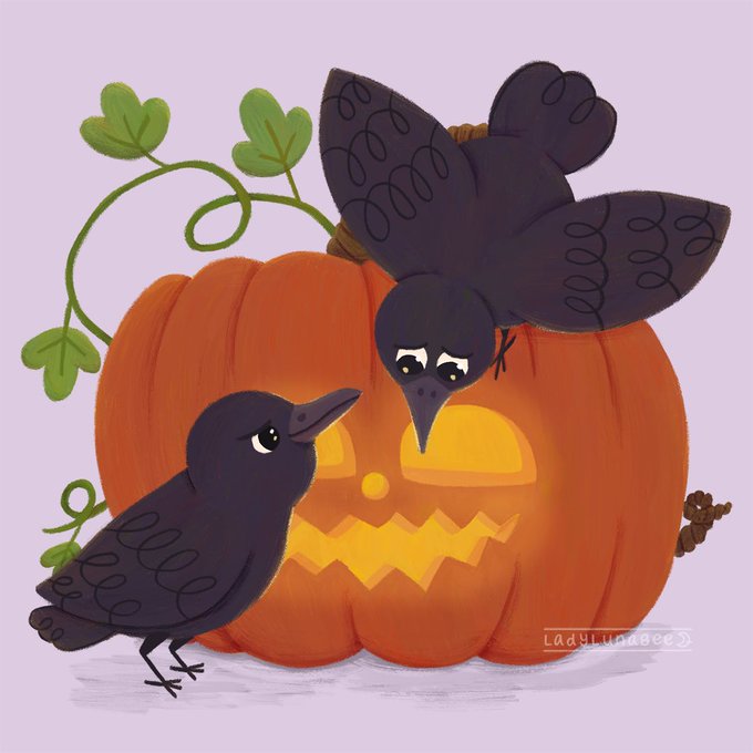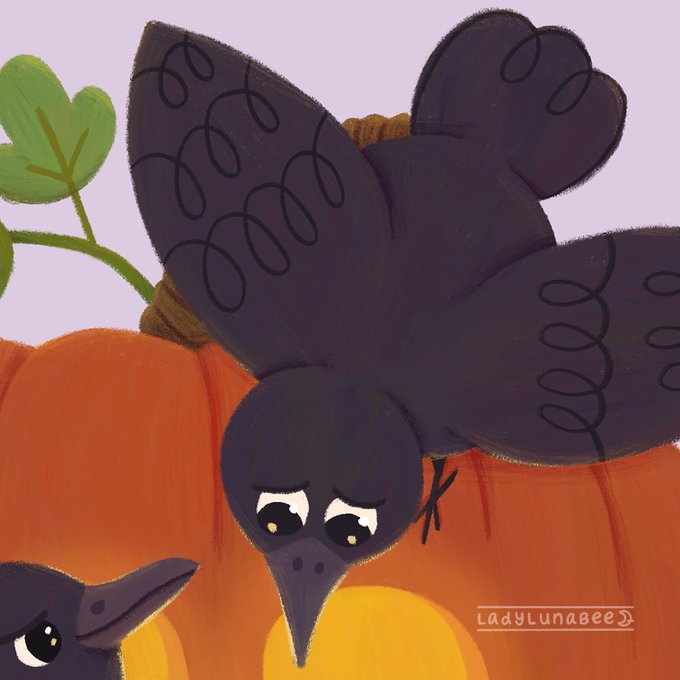 #kidlitart #halloween #birds #pumpkin #spoopy #peachtober