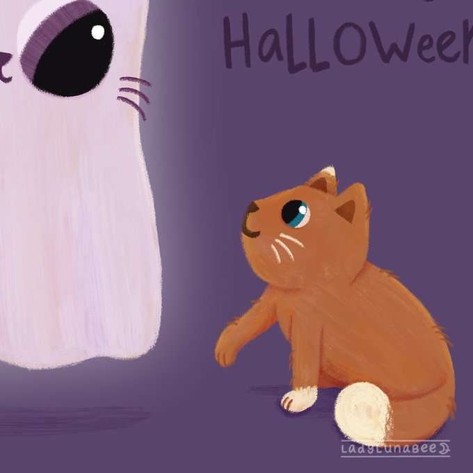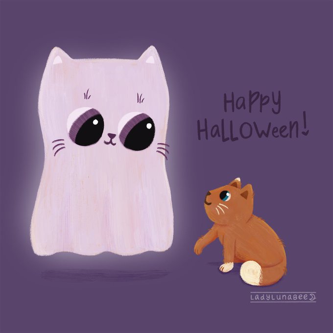 #kidlitart #halloween #happyhalloween #kitten #cat #ghost #art