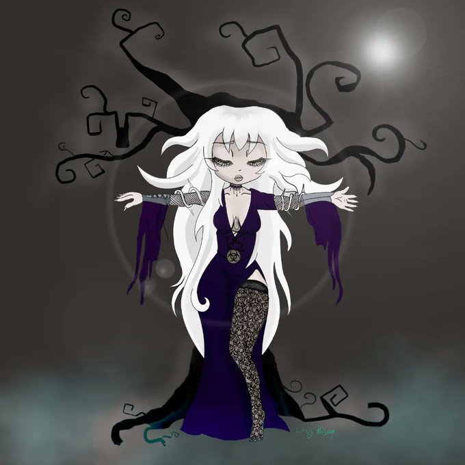 Terminé está brujita que siempre dibujaba cuando era más joven. Y @SonnyMansonShin la hizo con su estilo. El resultado final me encanta. #digitalart #ilustration #digitaldrawing #TimBurton