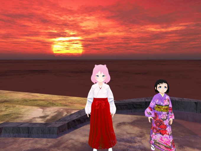 hk妹ちゃんと初日の出見て滝行しました🌄 #clusterVR