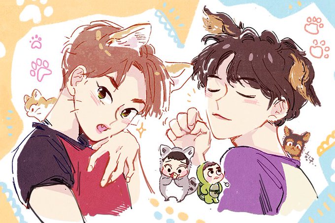 야옹이 슈밍의 치즈냥 슈밍이랑 요키 큥이가 사람으로 뿅 .. #iHeartAwards #BestFanArmy #EXOL @weareoneEXO