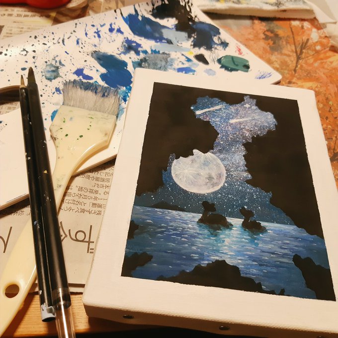 ラプラス岩の隙間から(アナログver.) #ポケモン #ラプラス #ラプラス(ポケモン) #夜 #星空 #海 #ポケモン剣盾 #アナログ #アクリル https://t.co/0kcp1r9jbo