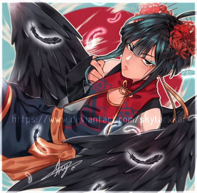 Finished my trade wiv @roundabit who is a sweet bun v////v I haven’t drawn wings in a while agsjfkfkg. Thank you for doing this art trade with me Sisi!!