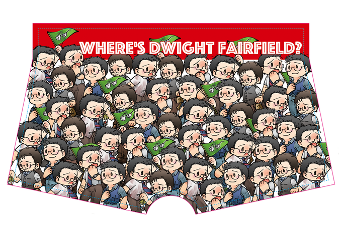 ドワイト100人を散りばめたボクサーパンツ型メガネ拭きを作成します。片側50人両側合わせて100人。
