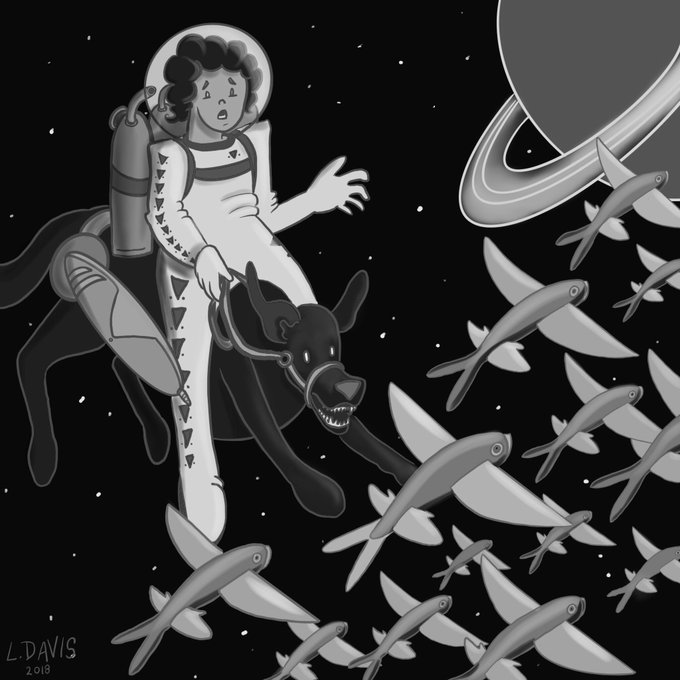 This week’s #DiceNDraw prompt is War Mount! My rolls for this piece were: Air, Space, Fins, and Sci-Fi.