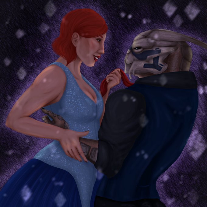 My lovely Shepard with Garrus the akward lovable turian that stolen her heart💕