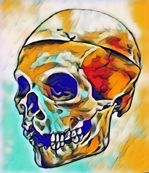 @ritanevermind @umutsezerkoc @OdysseyHeart @lilzidesigns @0xhansondex @wildalps @teexels @cosmic_manifest Here is one of my paintings from early high school and the skull I did for a book cover. I think I am improving…