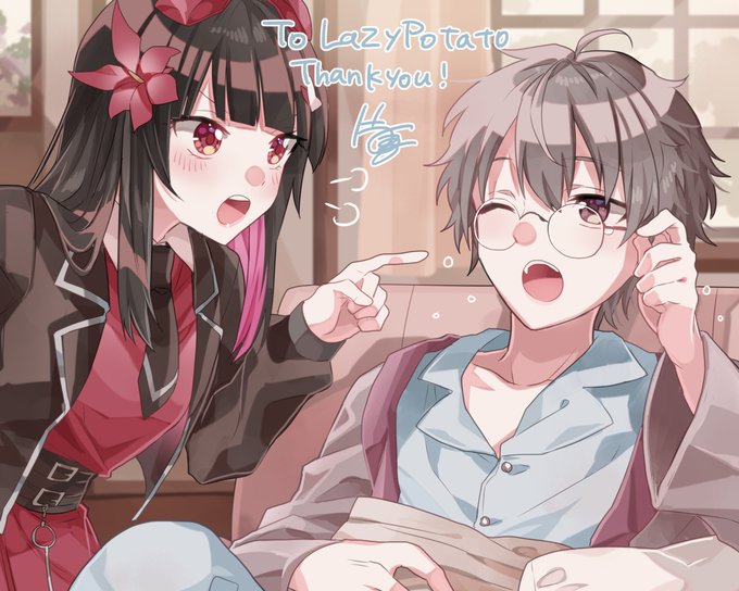 First skeb! I love it so much thank you @1217ex! Got a photo done of me and my little sis @KuroTsuki_cos nagging me for something. Maybe it was when I was too lazy to carry her to Diamond last season 🤣.