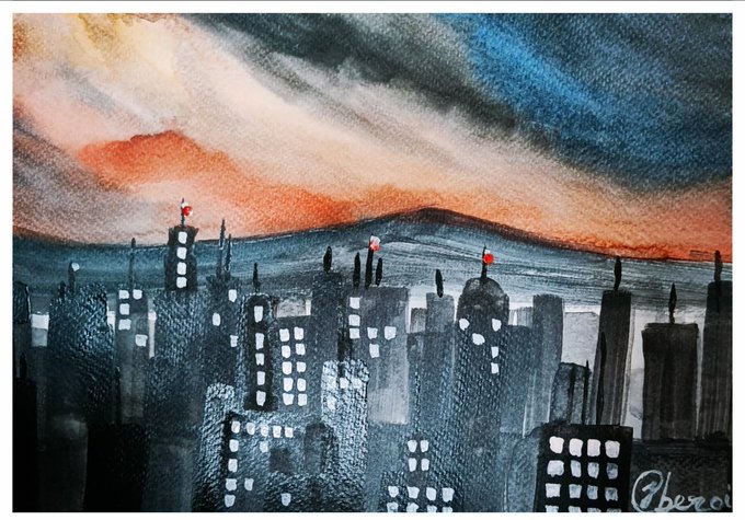 Blinking Skyscrapers #cityscapes #citylife #bigdreams #disparity #dystopia #watercolorpainting #semiabstract #artistsontwitter