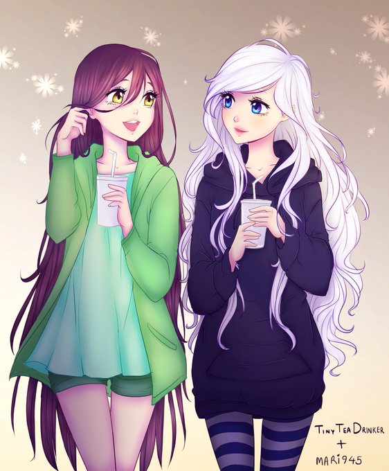 Line art by me and colors by her. These are our OCs, Violette and Pixie.