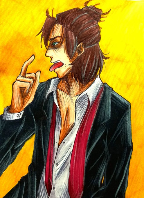 #traditionalart #traditional #art #arte #boy #suit #afterparty #party #hairstyle #greeneyes #oc #yellow #orange