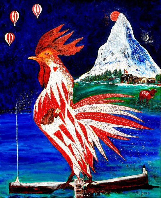 "Le coq au Cervin s'émerveille en Suisse", Huile sur toile L21