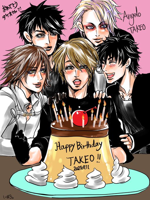 タケバーサリー‼️‼️‼️ タケオさん、おめでとう㊗️ございます(^∇^)‼️サプライズ巨大プリンをどうぞ。。さくらんぼが巨大なのは、遺伝子の配列をどうにかしたんだろか。衣装は最近ので混ざってますがw #Angelo #TAKEO #お誕生日